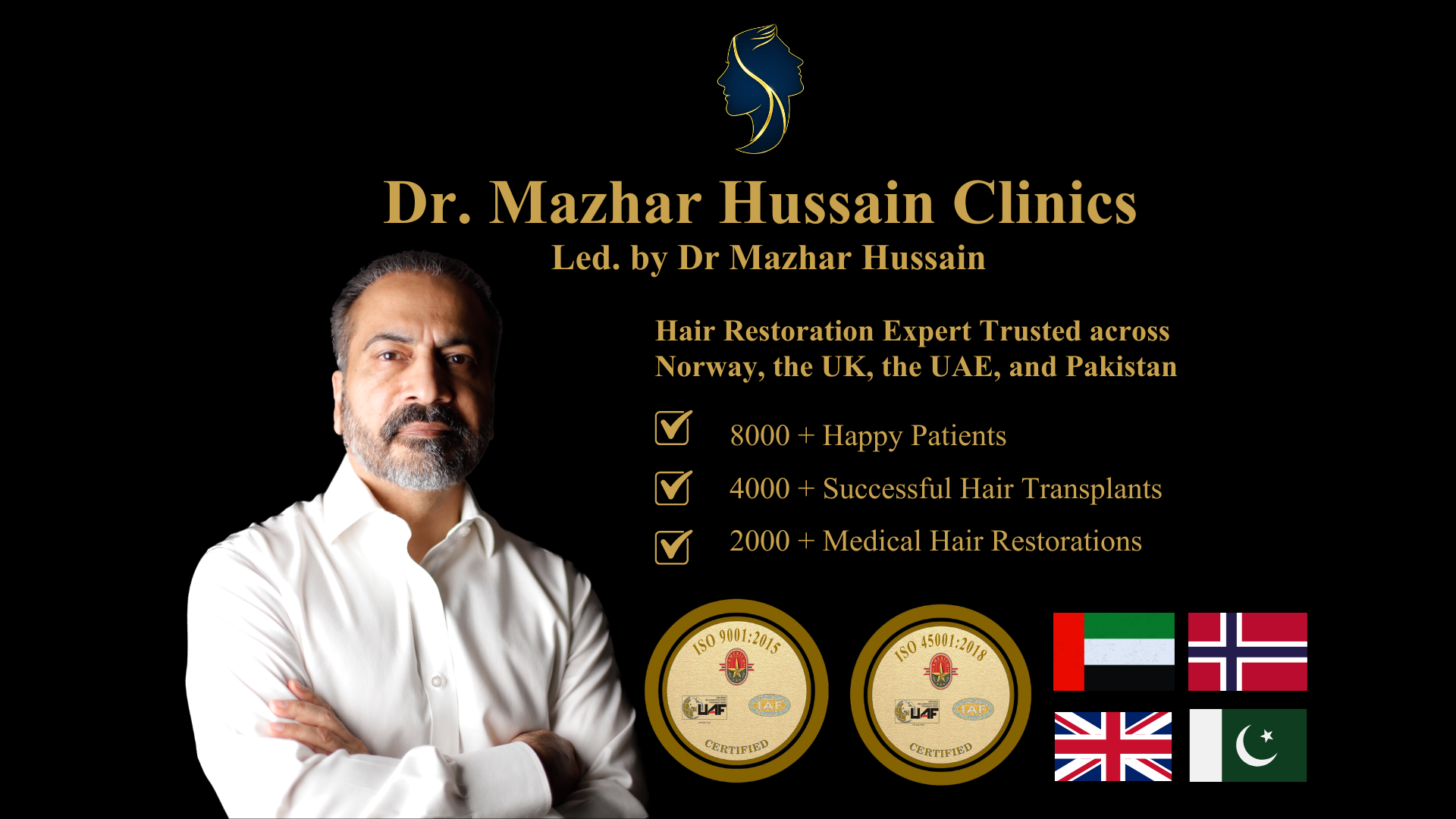I did my hair transplant in 2022 and PRP therapys with Dr Mazhar Hussain clinic. I observed so many positive things about this clinic. here is my personal opinion which helps people. Highly professional staff, hygiene control both in OT and clinic, Dr. Mazhar Hussain is very experienced doctor in FUE hair transplant, he drew my hairline as per my style but with his recommendations. Post surgery follow ups even after 4 years. I highly recommend this clinic.