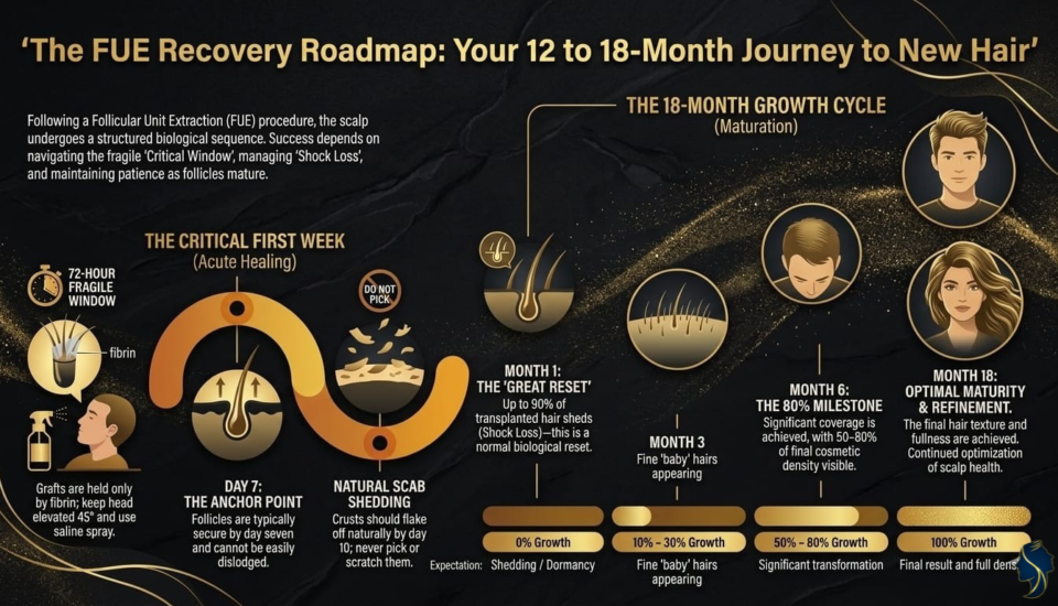 Transplanted hair follows a predictable growth timeline: